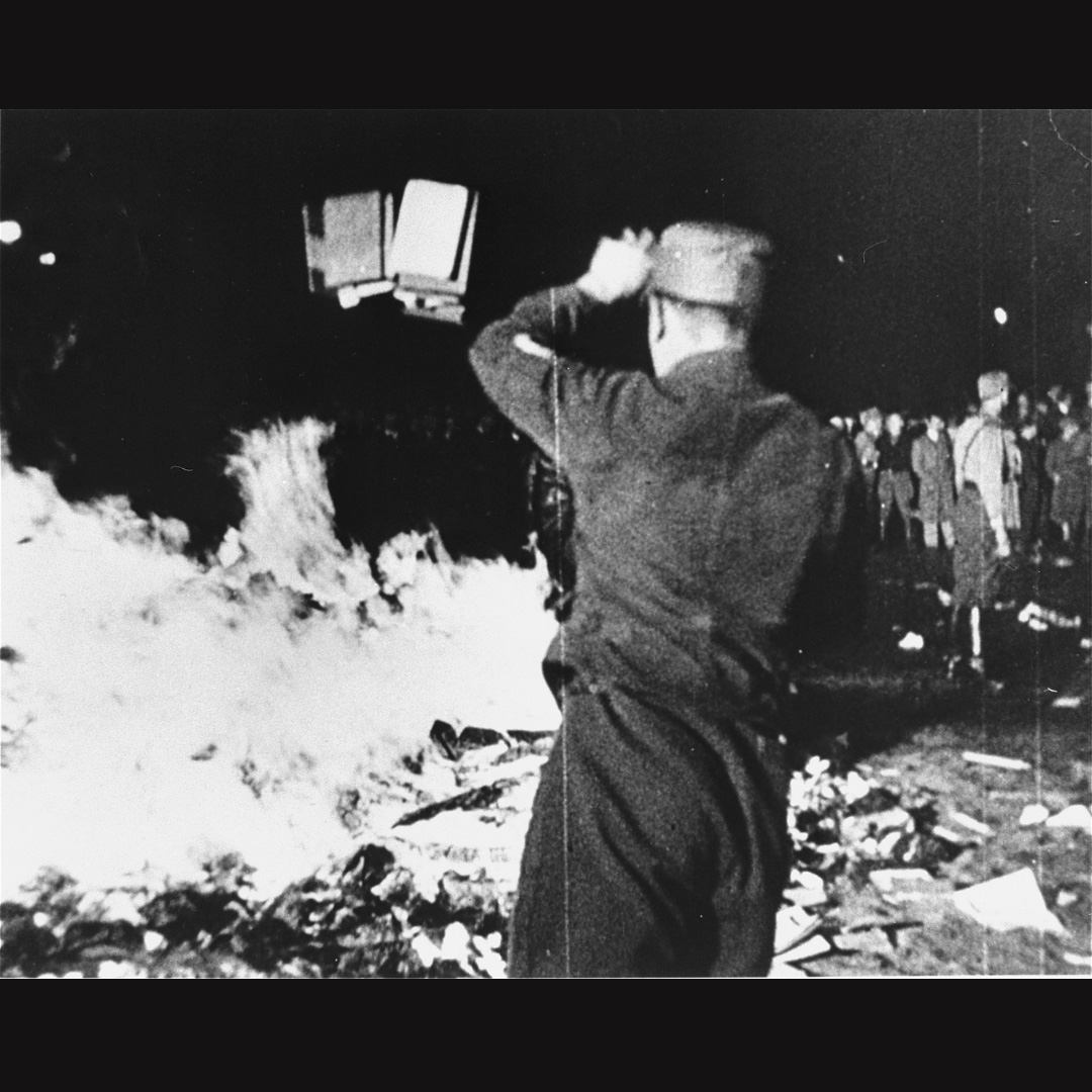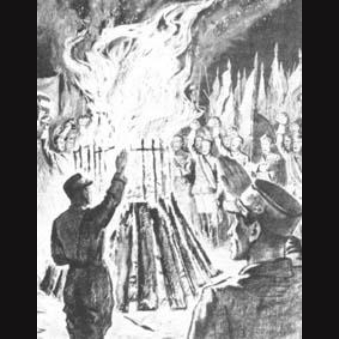 Qual o poder de um livro? Ao observarmos essa fogueira alimentada por livros, podemos refletir sobre um dos momentos mais duros da história contemporânea. Em 10 de maio de 1933, jovens do partido nazista se reuniram em várias cidades para queimar livros considerados uma ameaça ao regime. Essa ação tornou-se um símbolo de intolerância e censura. Você sabe o que é censura? Censura é quando o governo tenta controlar ideias, restringindo diferentes mídias como jornais, livros, filmes, músicas, internet e até o que é ensinado nas escolas. Isso pode acontecer por motivos políticos, religiosos ou culturais. A censura é inimiga da liberdade de expressão e da democracia. A queima dos livros buscava silenciar vozes discordantes, promovendo uma visão unificada da sociedade baseada em valores nacionalistas e racistas. Para Heinrich Heine, “Onde se queimam livros, acaba-se queimando pessoas”. Entre os autores cujas obras foram queimadas estavam judeus, dissidentes políticos, intelectuais e artistas modernistas. Eles também foram perseguidos pelo regime, confirmando de maneira trágica a afirmação do poeta alemão. Por outro lado, suas histórias nos fazem refletir sobre o poder da educação e da liberdade de expressão. Esses livros representam não apenas o conhecimento perdido, mas também a coragem daqueles que lutaram contra a tirania e a injustiça. Pense nos últimos livros que você leu. Uma leitura pode nos transformar? Imagem 1: Otto Gerhausen Queima de livros na Alemanha, 1933 Ilustração Wikimedia Commons Imagem 2: Um membro da SA joga livros confiscados em uma fogueira durante a queima pública de livros "não alemães" na Opernplatz em Berlim, 1933. Wikimedia Commons