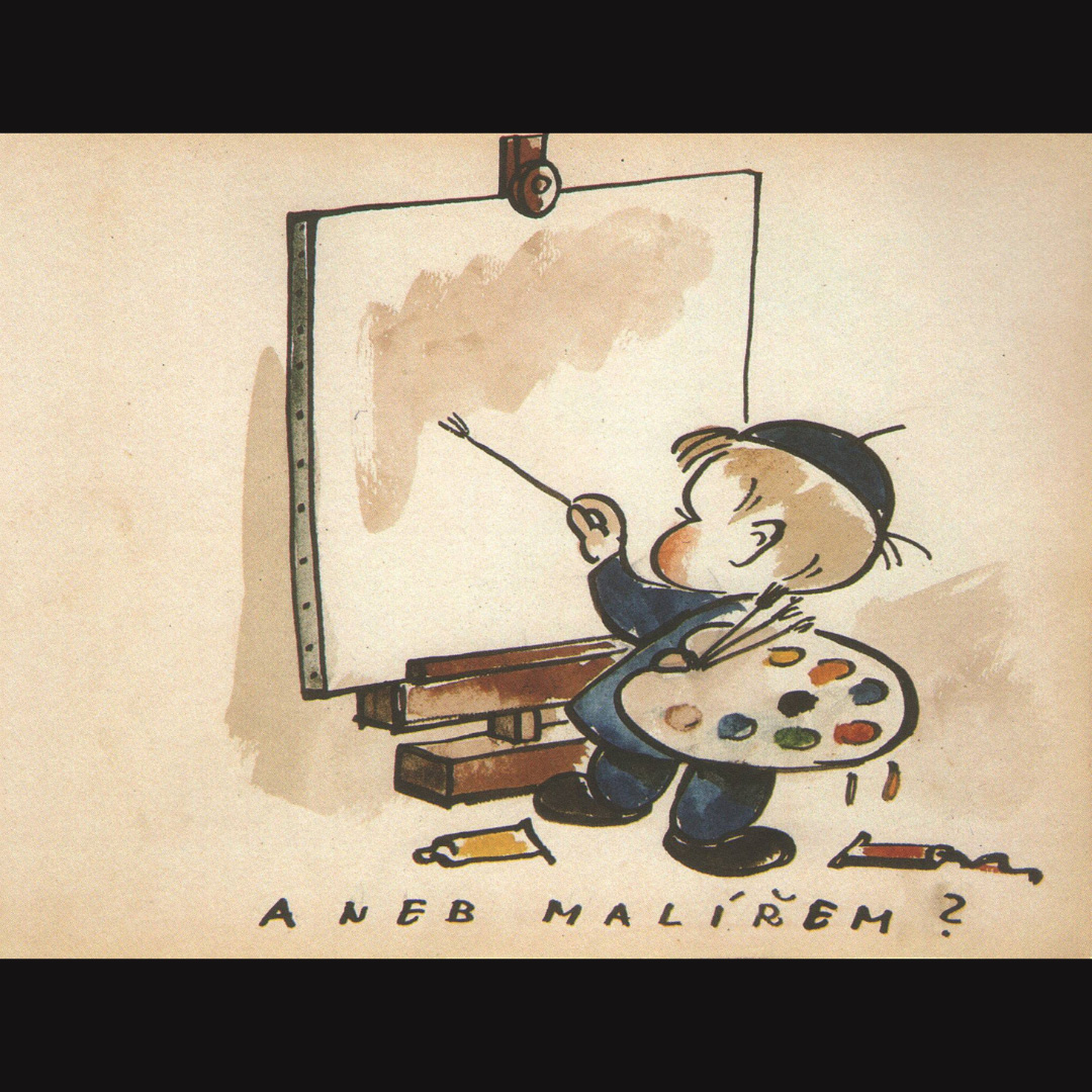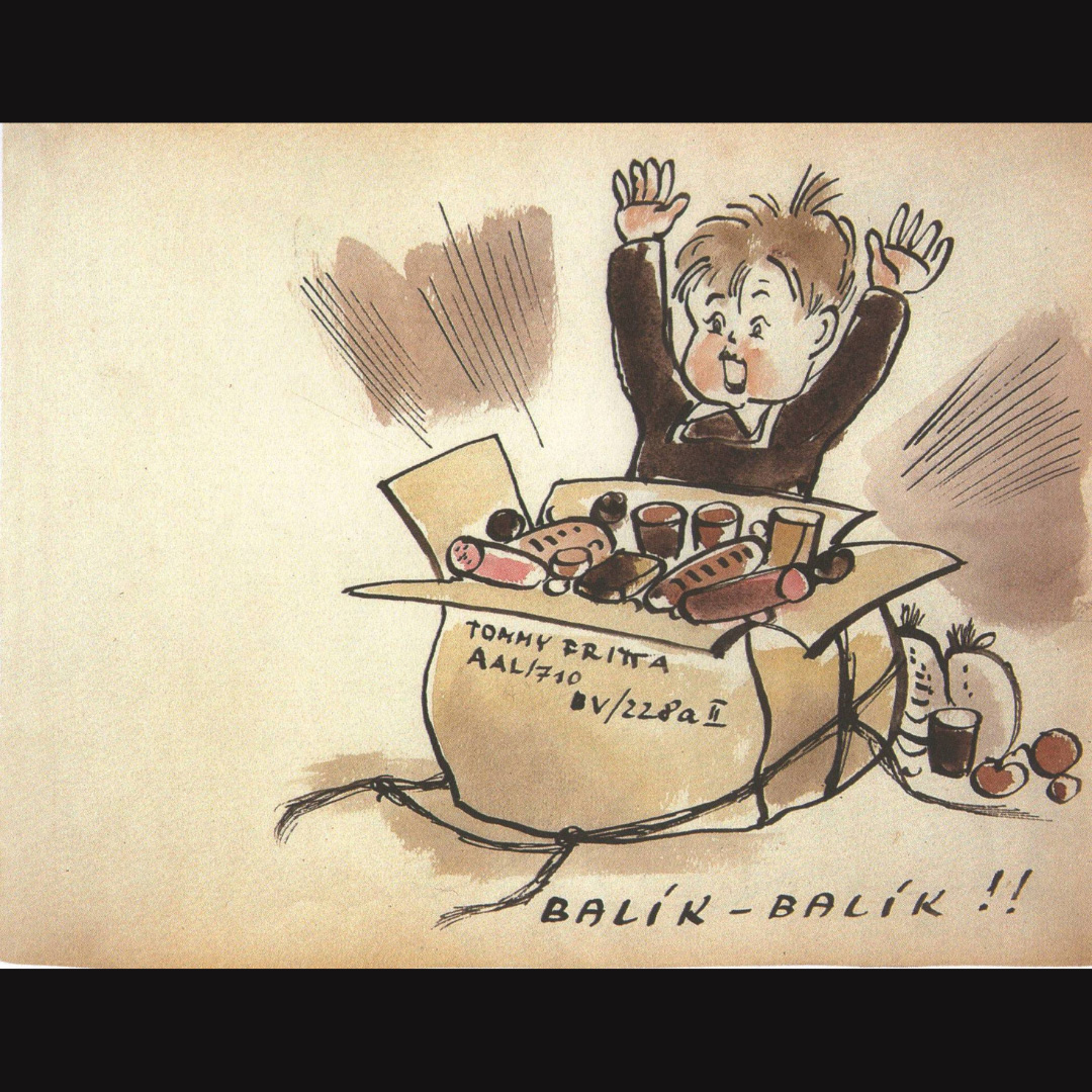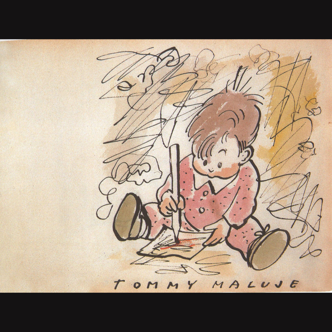 No desenho onde vemos os pais de Tommy, ambos choram mas têm sorrisos nos rostos. Tinham a esperança de que Tommy ficaria bem - e ficou! Após o período vivendo no Gueto de Theresienstadt, Tommy foi adotado por Leo Haas, - amigo de Fritta, pintor, ilustrador, artista gráfico e sobrevivente. Foi Leo quem ajudou a esconder os desenhos feitos por Fritta e os resgatou e publicou após a Guerra! Junto com sua esposa, Erna Haas, também sobrevivente, Tommy foi acolhido, abraçado e muito amado. A fotografia que vemos aqui é de Tommy, já mais velhinho, não é mais a criança tão representada ao longo desta sala. Vamos tentar imaginar, em meio a todos os desenhos, quais futuros criados por Bedrich Fritta se concretizaram? Será que Tommy viajou pelo mundo e conheceu diversas culturas? Será que ele pôde presentear a pessoa amada com uma bela flor? Será que Tommy se expressou por meio da escrita ou da pintura? Ou talvez organizou um grande jantar com todos os seus amigos e pessoas queridas? Talvez, nem todos os desenhos imaginados por Fritta para o futuro de Tommy tenham se tornado realidade, mas podemos sonhar que seu futuro foi repleto de amor e afeto!