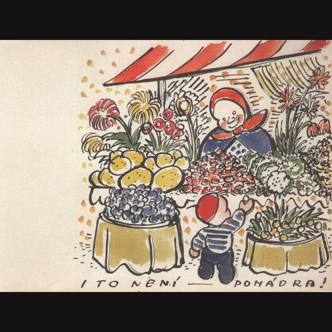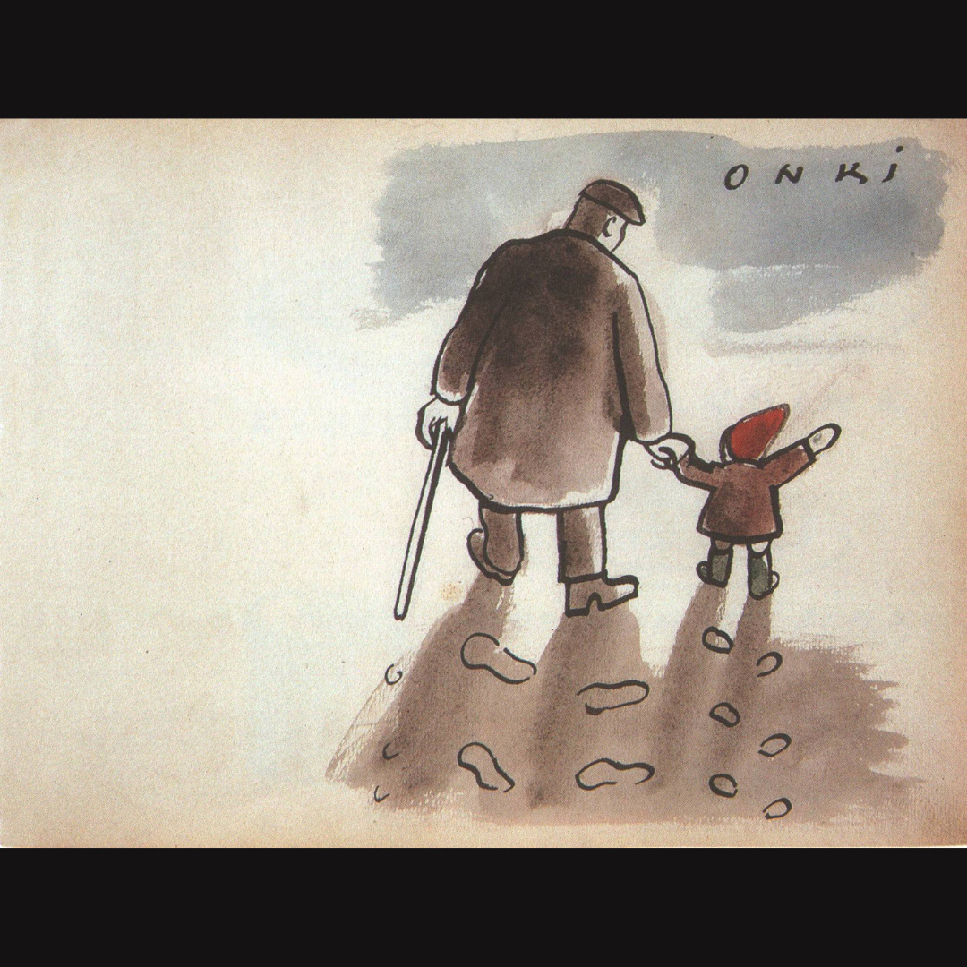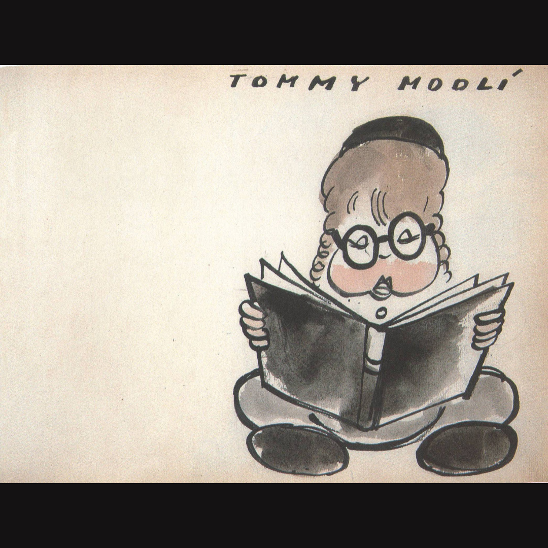 No desenho onde vemos os pais de Tommy, ambos choram mas têm sorrisos nos rostos. Tinham a esperança de que Tommy ficaria bem - e ficou! Após o período vivendo no Gueto de Theresienstadt, Tommy foi adotado por Leo Haas, - amigo de Fritta, pintor, ilustrador, artista gráfico e sobrevivente. Foi Leo quem ajudou a esconder os desenhos feitos por Fritta e os resgatou e publicou após a Guerra! Junto com sua esposa, Erna Haas, também sobrevivente, Tommy foi acolhido, abraçado e muito amado. A fotografia que vemos aqui é de Tommy, já mais velhinho, não é mais a criança tão representada ao longo desta sala. Vamos tentar imaginar, em meio a todos os desenhos, quais futuros criados por Bedrich Fritta se concretizaram? Será que Tommy viajou pelo mundo e conheceu diversas culturas? Será que ele pôde presentear a pessoa amada com uma bela flor? Será que Tommy se expressou por meio da escrita ou da pintura? Ou talvez organizou um grande jantar com todos os seus amigos e pessoas queridas? Talvez, nem todos os desenhos imaginados por Fritta para o futuro de Tommy tenham se tornado realidade, mas podemos sonhar que seu futuro foi repleto de amor e afeto!