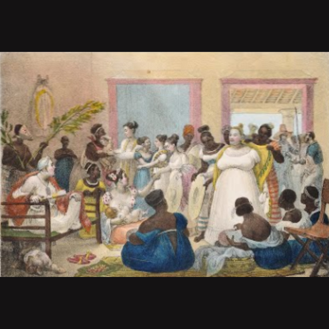 Nos seus livros de escola, você viu obras de Jean-Baptiste Debret? O que essas pinturas revelam sobre o nosso passado? Quem são os personagens principais dessas histórias? Entre 1816 e 1831, Debret, um pintor francês, se dedicou a retratar a biodiversidade brasileira, e as interações entre europeus, indígenas e africanos escravizados. Suas obras são documentos históricos importantes. Mas não podemos negar que Debret contou a história do ponto de vista dos colonizadores europeus, que ocupam o centro de suas imagens. A série Atualizações traumáticas de Debret criada por Gê Viana reinterpreta as cenas originais do artista francês. Seu olhar é provocativo, destacando como as injustiças da escravidão continuam a afetar o Brasil contemporâneo. Nessa série, somos apresentados aos rituais afro-indígenas das Casas de Tambor de Mina no Maranhão. Ali as mulheres negras são as protagonistas, elas comandam os ritos. Trazer essas figuras à tona é um gesto de reparação histórica. Viana resgata e valoriza o papel das mulheres negras na História do Brasil, produzindo memórias históricas e poéticas. Quais obras de arte você escolheria para contar a História do Brasil?