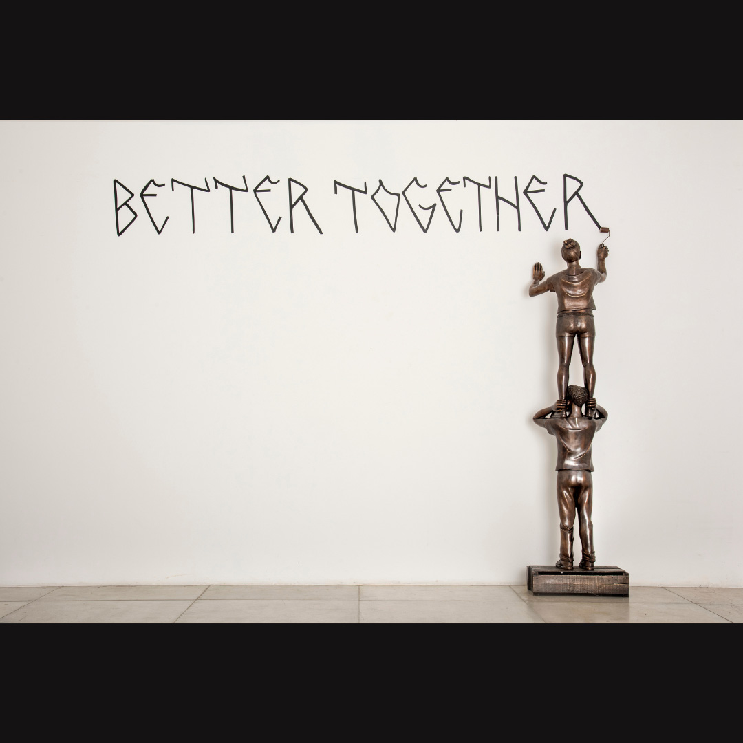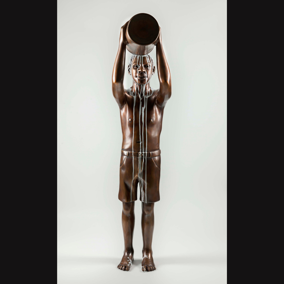 Flávio Cerqueira brindou a exposição com esta obra especialmente escolhida por ele, que monumentaliza a identidade e a memória de todas as meninas e mulheres que, como Anne Frank, foram e são vítimas da violência - e, ainda assim, abrem livros e miram o céu e o brilho das estrelas. O artista é reconhecido por seu engajamento social e por representar questões raciais e associadas à afirmação da diversidade que compõe a sociedade brasileira. Sua técnica e linguagem na escultura em bronze, geralmente associada aos grandes personagens históricos e heróis do passado, são direcionadas às pessoas negras, jovens e mulheres do presente. Especialmente aquelas que foram historicamente marginalizadas nas periferias das cidades, da sociedade e da história da arte. Em um processo de ressignificação de tradições artísticas e do nobre metal utilizado em suas esculturas, ele produz monumentos de enorme atualidade. São homenagens-denúncias dedicadas àquelas que escrevem, leem, erguem a cabeça e lutam de diversas formas pelo direito de ser.