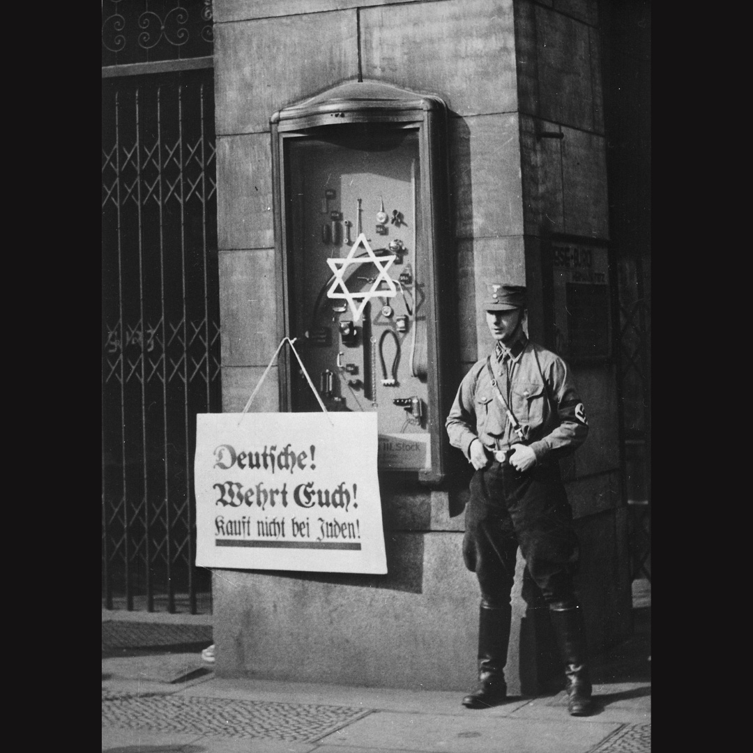 Nesse espaço, vemos a reconstituição de uma loja de roupas infantis pertencente à comunidade judaica. Na vitrine, lemos o cartaz maior: “Holandeses! Defendam-se! Não comprem de judeus!”. O que isso significa? Quando Hitler se tornou chanceler da Alemanha em janeiro de 1933, uma de suas primeiras medidas foi pregar cartazes com slogans antissemitas em lojas e empresas judaicas. A propaganda nazista também boicotou profissionais judeus como médicos e advogados. Você sabe o que é um boicote? O boicote é quando as pessoas decidem não comprar ou não participar de determinada ação como forma de protesto, mostrando que não concordam com algo. O objetivo era prejudicar economicamente a comunidade judaica. Este foi o início de uma série de medidas que levaram à perseguição de grupos marginalizados, como ciganos, homossexuais, pessoas com deficiência e opositores políticos. Imagine que crianças judias como Anne Frank viam esses cartazes todos os dias quando andavam pelas ruas. Como descrever essas experiências? Como elas resistiram à perseguição? Imagem 1: A partir de 1º de abril de 1933, as lojas judaicas na Alemanha nazista foram vandalizadas para alertar as pessoas a não comprarem nesses locais. As placas na loja diziam: Judeu! Wikimedia Commons Imagem 2: Em 1º de abril de 1933, teve início o boicote anunciado pelo partido nacional-socialista. Cartaz com os dizeres: "Alemães, defendam-se, não comprem de judeus", na loja judaica Tietz. Wikimedia Commons