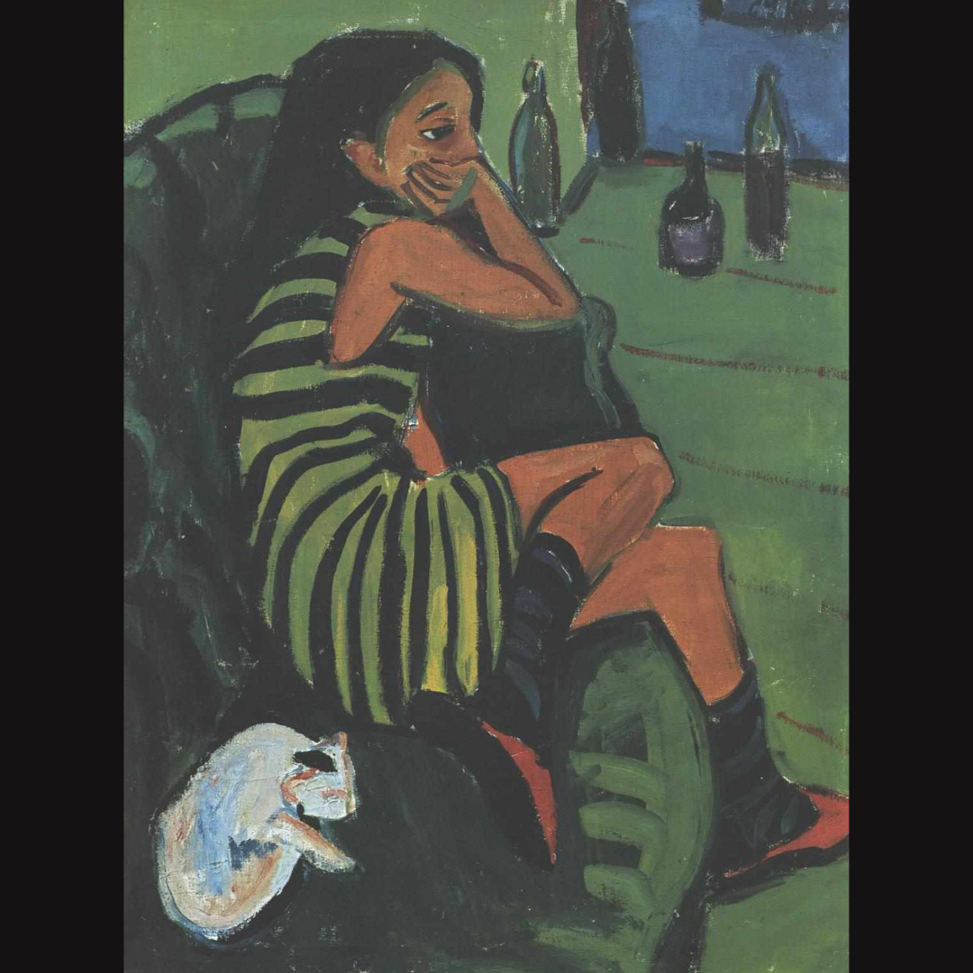 Com sua feroz paleta de cores, Ernst Kichner (1880-1938) produziu cenas do cotidiano e retratos da vida na Europa dotadas de grande expressividade. Suas jovens modelos misturam aparente pessimismo, singela beleza e intensa personalidade, imagens de uma época anterior às guerras mundiais com seus matizes e nuances contrastantes. Kirchner foi fundador do grupo vanguardista Die Brücke (A Ponte), que buscava romper com as tradições rumo à liberdade e à modernidade. Por isso e por suas posições políticas antiguerra, mais de 600 de suas obras foram consideradas “degeneradas” pelo regime nazista e alvo de perseguição. Sua morte ocorreu um ano antes da eclosão da Segunda Guerra Mundial.