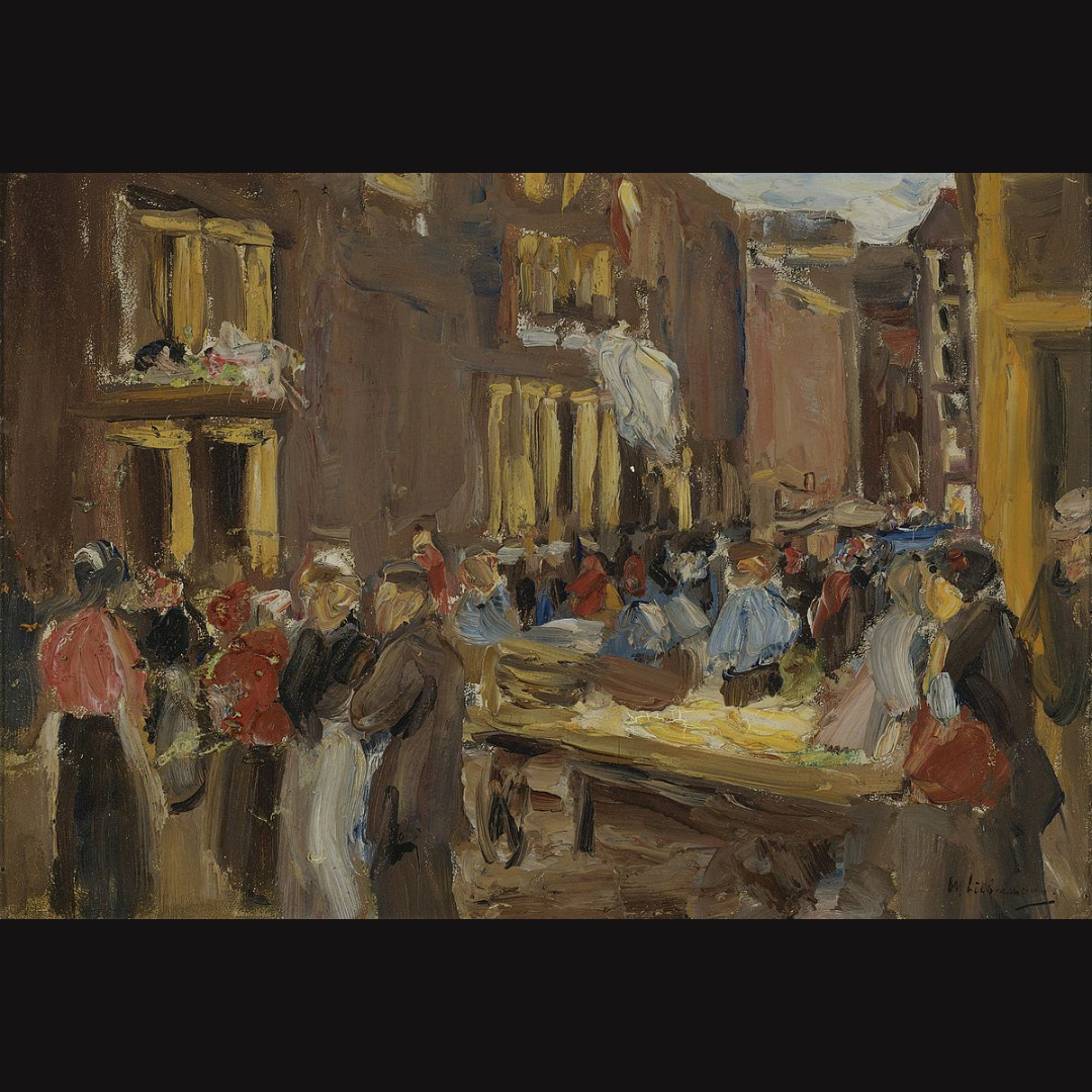 Em suas pinturas, Max Liebermann (1847-1935) representou, com pinceladas marcadas de personalidade, as ruas e bairros habitados por judeus em Amsterdã. Suas luminosas impressões mostram o colorido cotidiano dessa população: suas vestimentas, hábitos e integração em uma cidade que, antes das grandes guerras, era tradicionalmente considerada das mais tolerantes e liberais da Europa. O pintor judeu-alemão, fundador da primeira geração de vanguardistas da Secessão Berlinense, foi presidente da Academia Prussiana das Artes, cargo ao qual foi forçado a renunciar quando esta parou de aceitar membros judeus. Morreu em Berlim, poucos anos após a tomada do poder pelos nazistas, dos quais foi um crítico mordaz. Muitas de suas obras foram mais tarde consideradas “degeneradas” pelo regime, retiradas de exposição e destruídas.