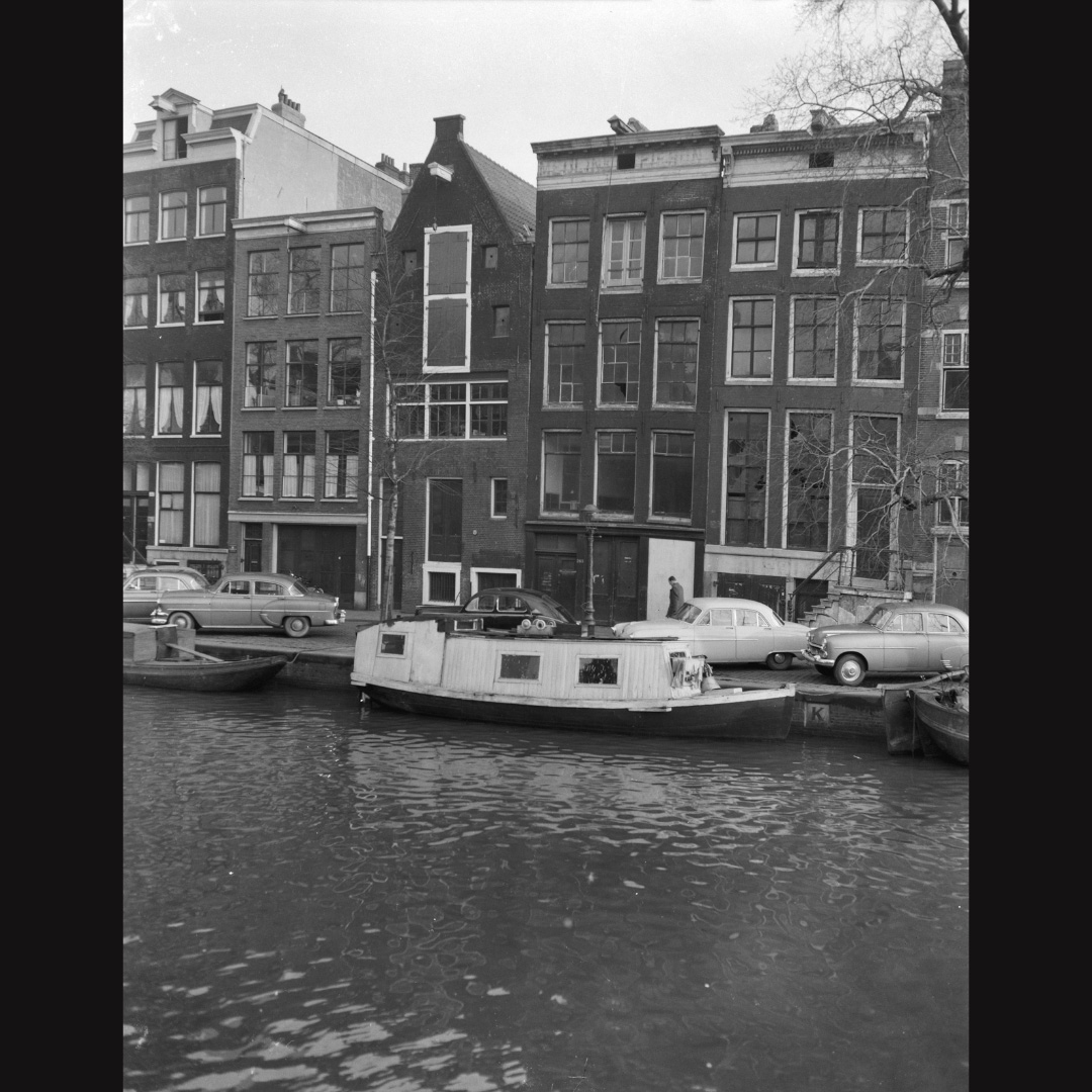 O que faz uma pessoa se sentir em casa? Na maquete do “Anexo Secreto”, temos a representação em miniatura do local onde Anne Frank e sua família se esconderam da perseguição nazista. O edifício, localizado na rua Prinsengracht, número 263, típica construção de Amsterdã. Observando atentamente, vemos que uma das janelas do segundo andar está coberta por uma prateleira, escondendo o anexo em que os Frank viveram por dois anos. A entrada fica atrás de uma estante de livros que podia ser removida, revelando a escada estreita que levava ao anexo. Nos quartos, há camas, mesas e cadeiras simples, prateleiras e armários improvisados para armazenar suprimentos e pertences pessoais. Apesar da situação precária, as paredes são cobertas por fotos recortadas de revistas. Anne Frank as colou ali na tentativa de criar um sentimento de pertencimento ao espaço. Apesar de tudo o que deixaram para trás, a família cuidou desse novo espaço para que se parecesse com um lar. E você? Quais elementos da sua casa fazem com que você se sinta confortável? Nas próximas salas da exposição, você visitará uma reconstituição detalhada do “Anexo Secreto”. Aproveite essa oportunidade para observar quais elementos visuais e sonoros você identifica. Como eles ajudam a contar a história de Anne Frank? Imagem 1: Vista frontal da fachada da Casa da Anne Frank, 1957 Wikimedia Commons Imagem 2: Vista traseira da fachada da Casa da Anne Frank, 1957 Wikimedia Commons