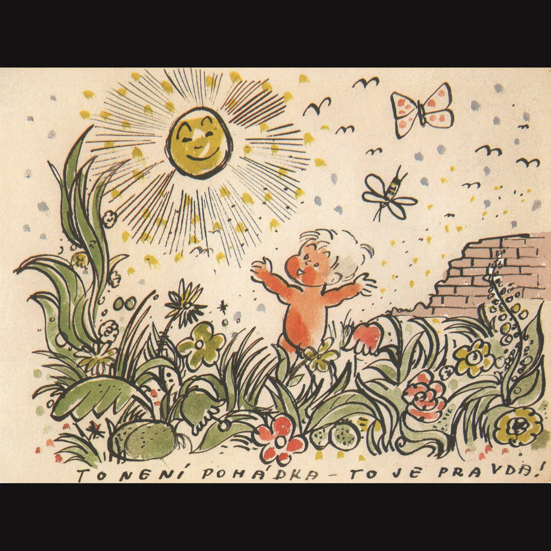 O que te faz feliz? Pode ser viajar por aí, caminhar livremente em um jardim ensolarado, presentear uma menina com uma flor e mostrar todo o seu charme… Este foi o futuro que Fritta imaginou para seu filho Tommy através de suas ilustrações. No desenho do jardim, vemos um muro que se quebra ao fundo. O que será que ele simboliza? De qualquer forma, aqui vemos ideais de liberdade. No aniversário de três anos de Tommy, ela não existia, mas foi imaginada, criada e vivida através desses desenhos. Tommy viveu até ficar bem velhinho… será que os ideais de liberdade dele eram os mesmos que seu pai idealizou? E os seus, quais são? Represente a felicidade através de um movimento, gesto, ou som!