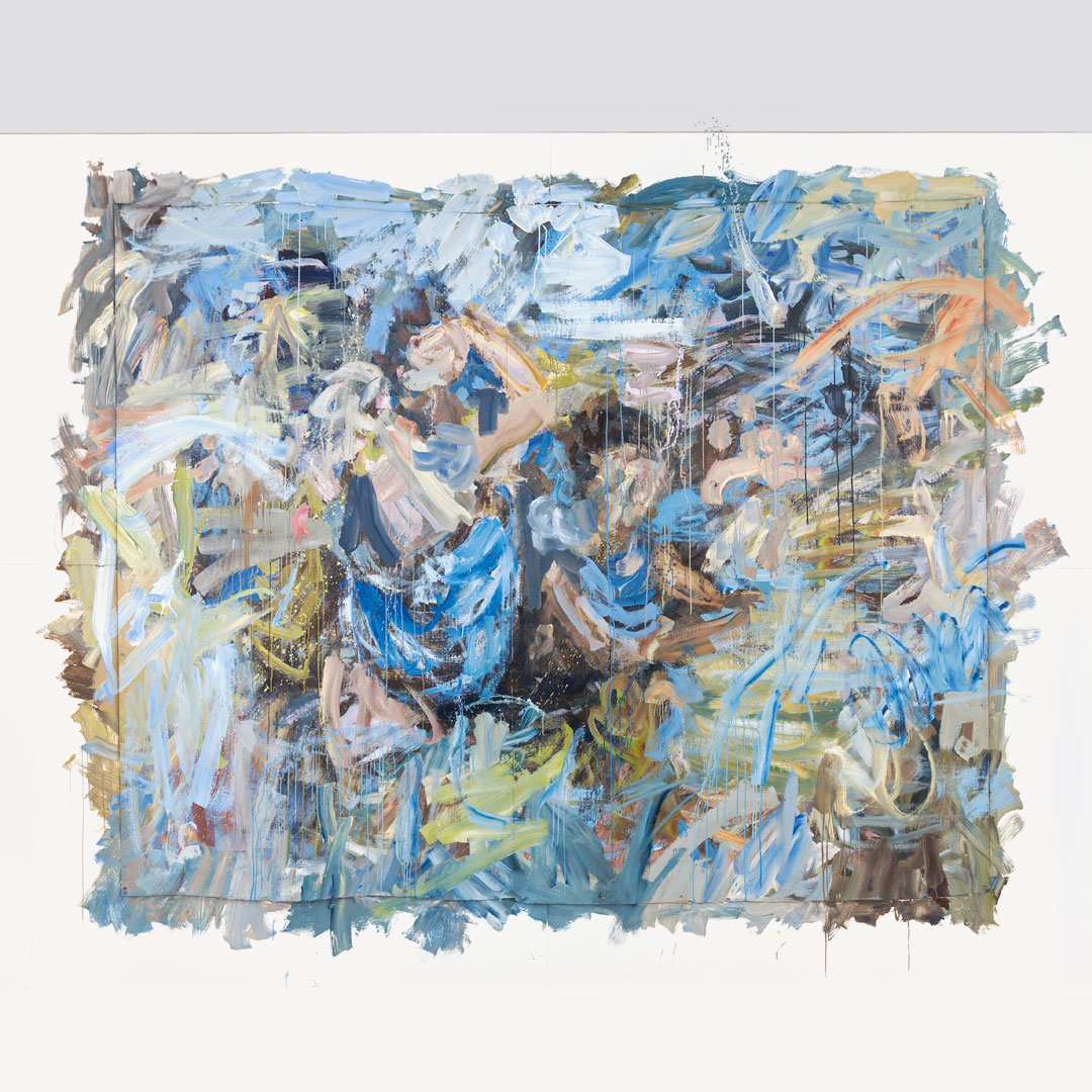 Pintura Depois de alguns anos dedicados à figuração costumbrista, a pintura de Mariana Ferrari passou a uma prática quase gestual, vandalizando bastidores e paredes com o poder de uma batalha protagonizada por pinceladas abruptas e definitivas. Sua pintura tornou-se registro de um exercício transbordante de força física e pigmentar que avança até onde o corpo e os recursos materiais da artista permitem. Em Lavanderas, assim como em outras obras do mesmo período, notamos no título, e podemos conjecturar a partir da paleta e de algumas de suas formas, a vigência de reminiscências bucólicas. Presentes, ainda que de forma inconsciente, a terra crua, o mato e um rio que rodopiam os corpos laboriosos. Sobre eles, engessados pela explosão da tinta, estão as possibilidades de projetar esta obra na alçada expressionista, informalista e da chamada “má pintura”.