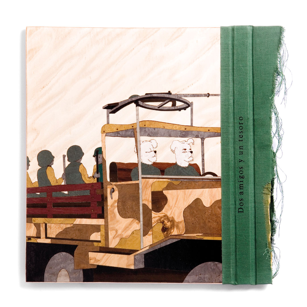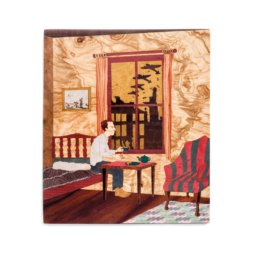 Marchetaria Por mais de três décadas, Sebastián Gordín vem construindo, com uma técnica prodigiosa, universos narrativos e personagens fantásticos em escala reduzida. Exímio desenhista, escultor e pintor, sua produção encontrou seus formatos mais característicos em duas disciplinas inusitadas para a arte argentina: o modelo e, como vemos nas obras aqui presentes, a marchetaria. São peças de uma preciosidade artesanal única e beleza hipnótica, animadas, como disse a artista e curadora Verónica Gómez, por “uma fantasia excessiva e precisa, tão cativante quanto cáustica”. As cenas de Gordín sempre exibem um momento de drama profundo dentro de uma história (um filme classe B, uma história em quadrinhos etc.) a qual desconhecemos, mas que não podemos deixar de tentar reconstruir e de cujo intrigante feitiço dificilmente conseguiremos nos livrar depois de deixar a mostra.
