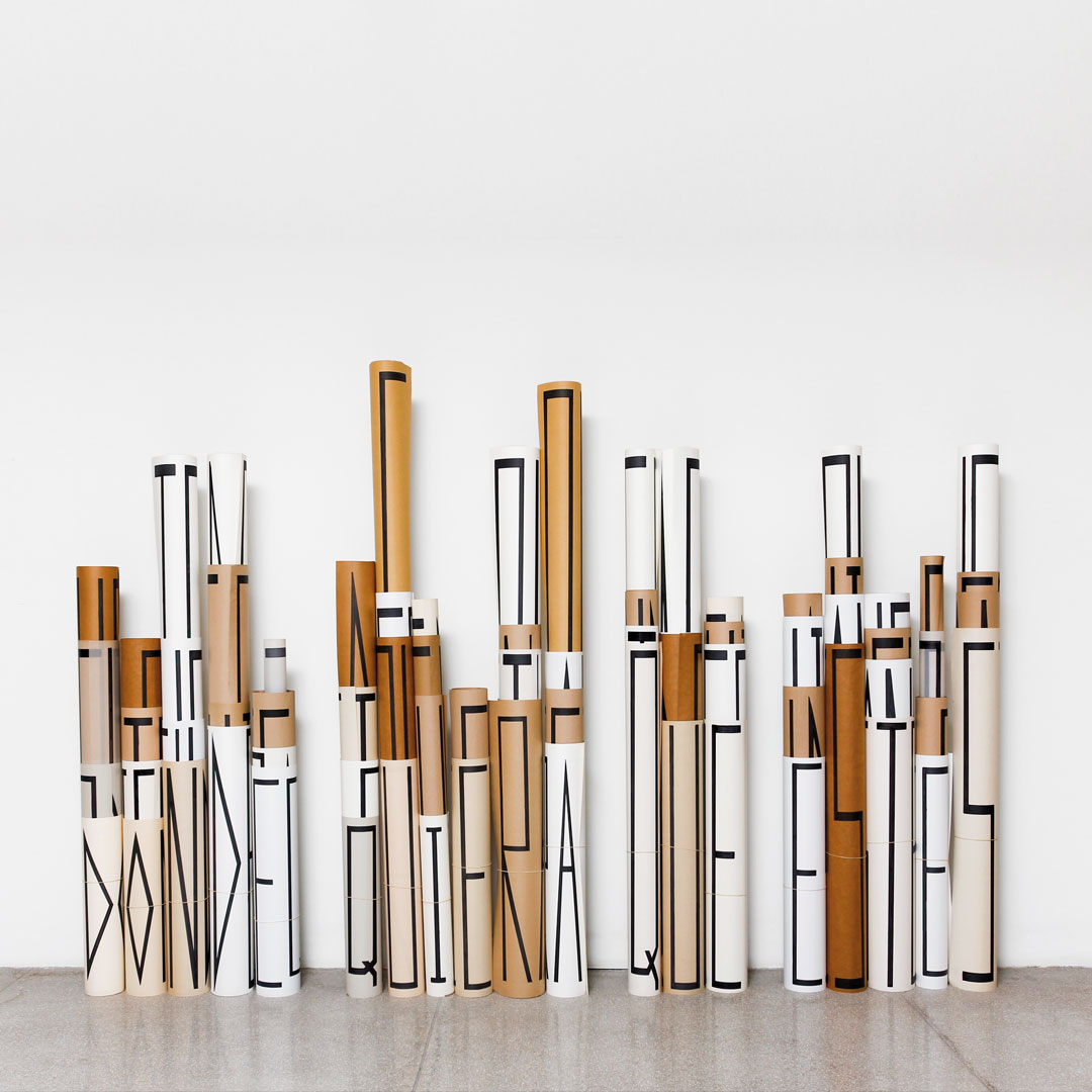 Instalação Através da instalação, das peças gráficas, do vídeo ou da criação de objetos, Pablo Accinelli constrói peças capazes de se apropriarem de algumas das mais importantes tradições conceituais da segunda metade do século XX, reinterpretando-as. Poesia concreta, tipografia e grafite são os vetores de inspiração para esta peça. Um texto que é uma promessa e um estímulo – Donde quiera que estés –, projetado no espaço, como uma espécie de megálito ou outdoor modular com layout variável. Em uma primeira e muito rápida leitura, cada letra aparece em um prisma geométrico de diferente cor e altura. Então, descobrimos que cada cilindro concêntrico encerra, enrolado em si mesmo e preso por um elástico, todas as palavras que compõem a frase. Linguagem e geometria projetando materialmente a pesquisa anunciada no título, através das ferramentas fornecidas pela arte e pela poesia.