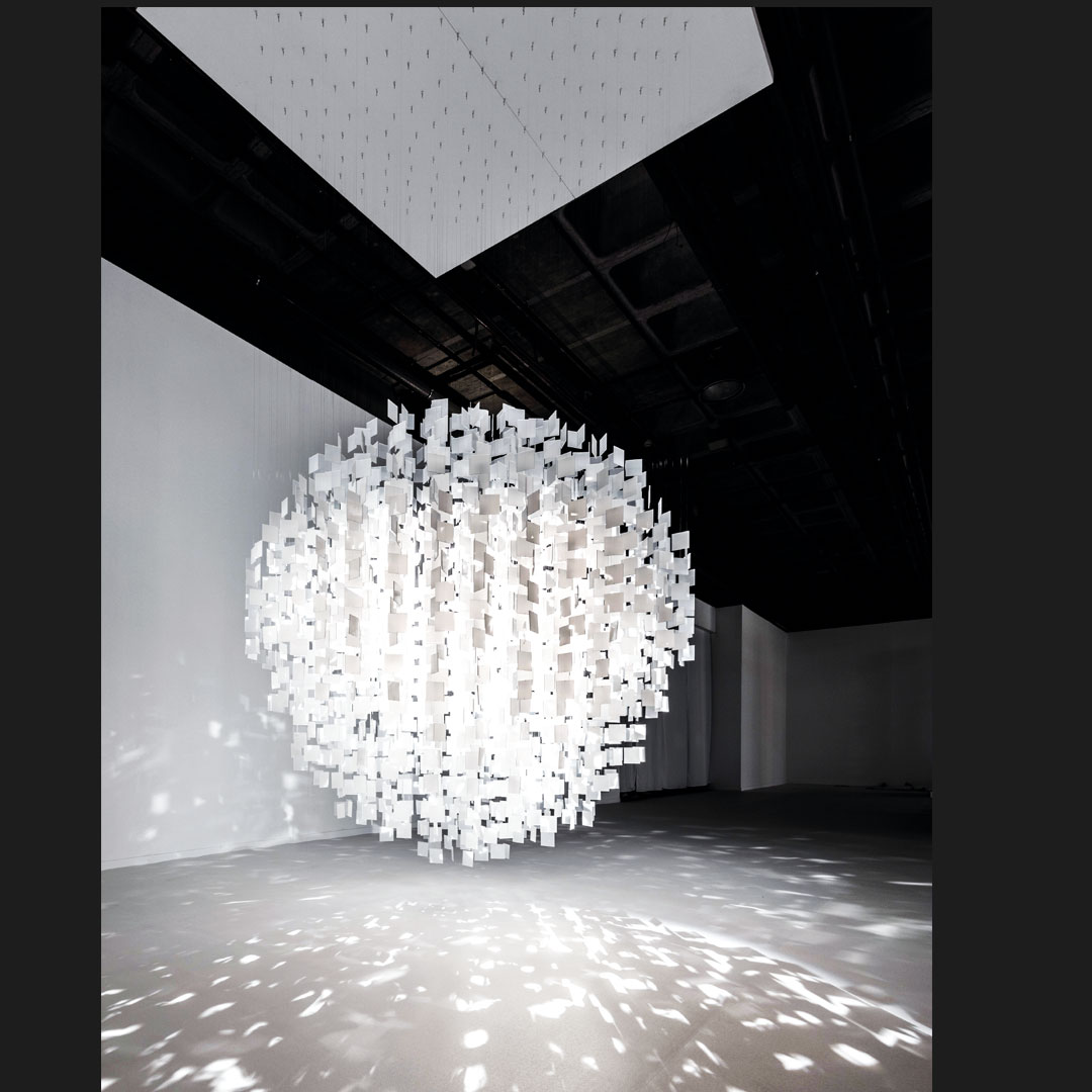Escultura Referência internacional da op art e da arte cinética, a obra de Julio Le Parc é referência para a arte argentina há mais de meio século. Objetos que encantam e fascinam e permitem ampliar as possibilidades da experiência visual. Este trabalho sintetiza muitas das investigações realizadas pelo artista. Um móbile de grandes dimensões e geometria simples, dotado de leveza, movimento e efeitos de luz a partir de sua constituição material. Uma esfera que é um encontro de peças de plástico, ordenadas e sequenciadas ritmicamente, penduradas em cordas tênues. Sphere blanche é um artifício que recria a natureza, que incorpora e refrata as vibrações do ambiente como potência visual e motora. Esta “unidade de existência”, como o crítico Jorge Romero Brest chamou a obra de Le Parc, não só nos permite evocar corpos celestes como também descobrir a constituição volumétrica e composicional de uma figura, neste caso, uma esfera idêntica àquelas que habitam nosso mundo.