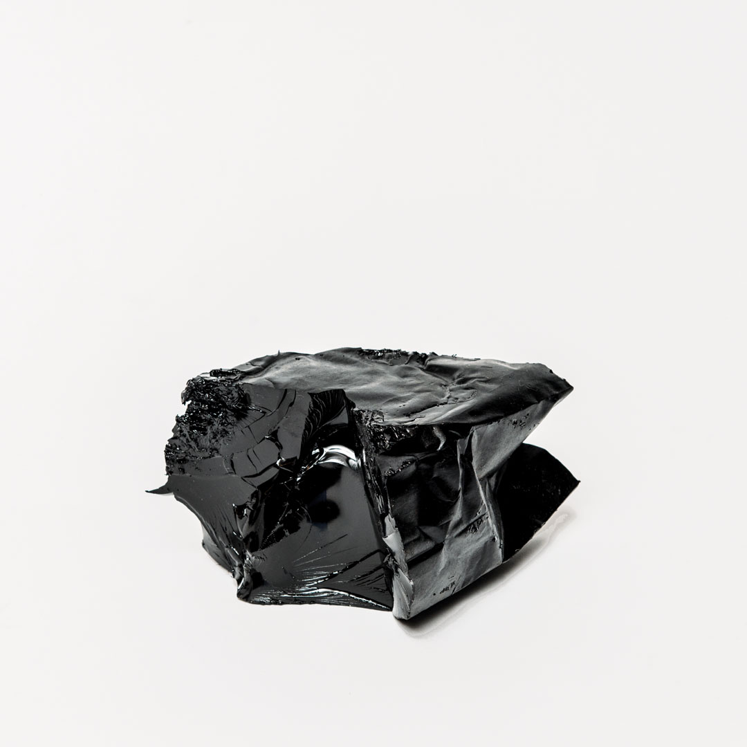 Escultura de piche Jane Brodie investiga materialidades urbanas – by products, como diz a artista – , seduzida por seus atributos plásticos mais essenciais (volumes, texturas, formas, cores) que permitem a ela construir uma perspectiva sobre os elementos concretos de tudo o que é material. Seus objetos são o produto combinado do acaso e da sistematicidade. Os fragmentos fortuitos da realidade que ela encontra são atravessados por um olhar afetivo e classificador que os preserva e assim os investe de uma aura artística. As três peças de breu em exibição fazem parte de uma série ainda em curso que começou em 2002. Quando o clima permite (o material é sensível ao calor), Brodie produz, a partir de golpes cegos com um cinzel, uma explosão de fragmentos de breu. Depois de estudá-los, preserva aquelas frações nas quais percebe formas únicas e combinações de superfícies brilhantes e foscas. E nesse momento, como acontece em todo ready made, artista e obra se constituem em um mesmo e único movimento.
