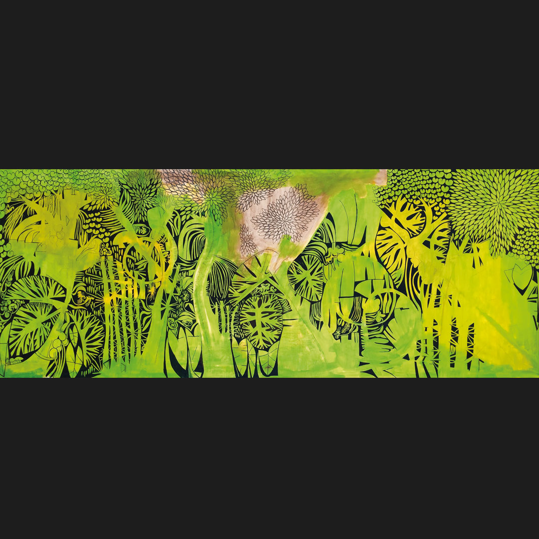 Pintura A produção de Florencia Bohtlingk se destaca no contexto da pintura argentina contemporânea por sua fidelidade a um gênero abandonado por muitos de seus colegas: a paisagem rural. Em diversas obras de diferentes dimensões e técnicas, a artista retratou, sem ambições representativas e com um estilo inteiramente pessoal, longe de qualquer "ismo", cenas da vida no campo na província de Misiones e nas margens do Río de la Plata, dois locais onde residiu. Nas duas pinturas monumentais que aqui exibimos, Bohtlingk nos faz mergulhar, por meio de formas sintéticas que poderiam ter sido recortes feitos com tesouras, na exuberante flora desses dois espaços geográficos. Entre as duas obras, pairam continuidades e diferenças que emergem iluminadas pelos clarões verdes fluorescentes que sobrevivem na artista como experiência de vida na selva.