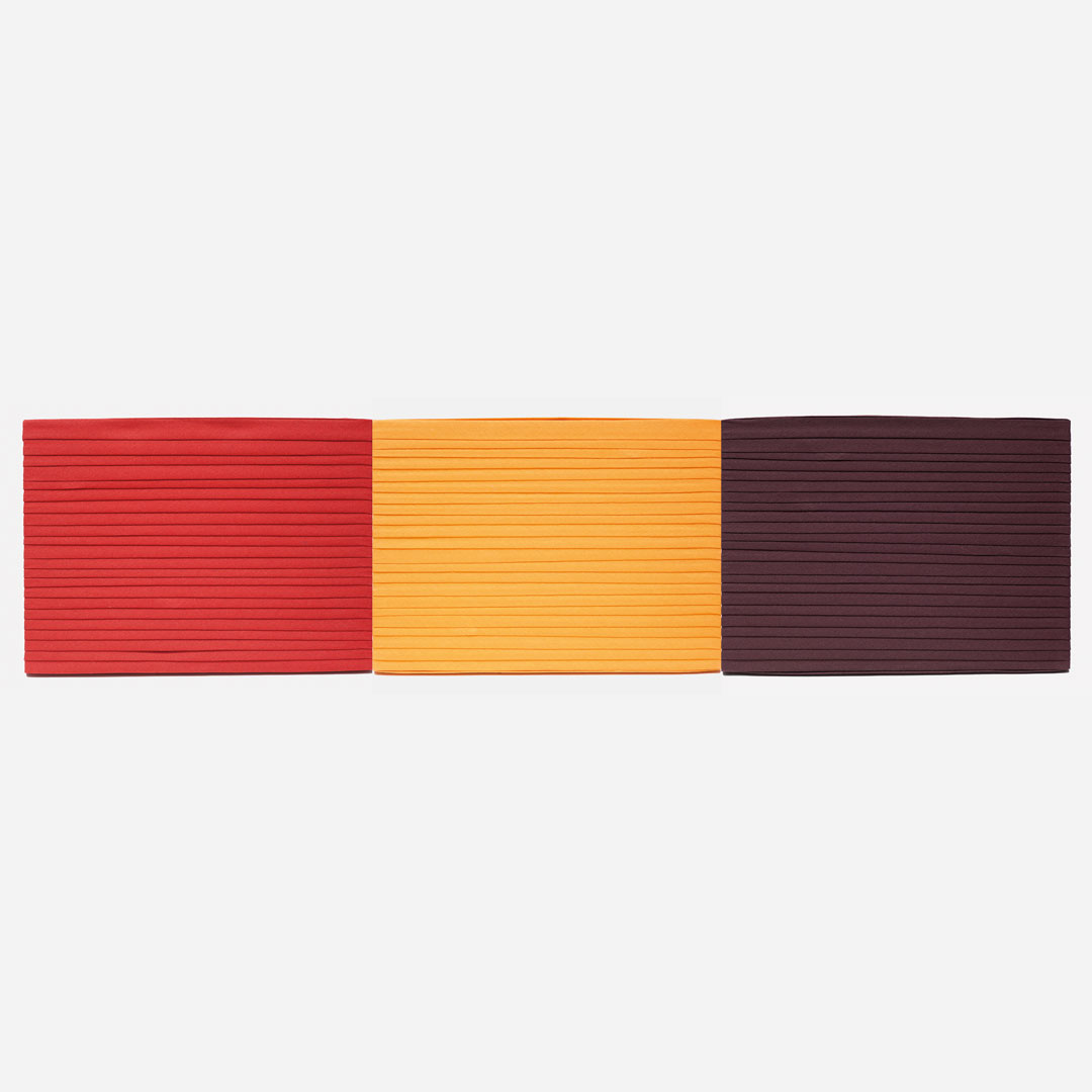 Madeira e fita viés Construídas em torno de uma rigorosa economia que consegue a maximização dos resultados formais a partir de uma aparente austeridade de meios, as peças de Daniel Joglar calibram a maior delicadeza do gesto e a maior precisão no recurso utilizado. Nestas, assim como em cada uma de suas obras, Joglar coloca em jogo, através de um exercício de seleção, organização e disposição no espaço, uma análise precisa de formas, cores e materiais que de repente se tornam absolutamente fundamentais e necessários. Cada elemento, pela sua mera presença, perturba qualquer alternativa possível e torna impensável seu desaparecimento. Neste caso, por exemplo, apenas quatro painéis inteiramente cobertos com fitas coloridas expressam, ao mesmo tempo, sua simplicidade material bem como a questão sobre seu significado.