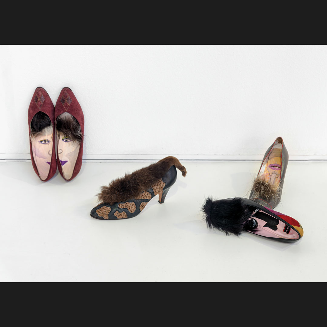 Pintura sobre sapatos Entre as ambições mais desenfreadas da pintura está a de engolir o mundo e transmutar sua existência em um efeito representativo. Em trabalhos anteriores, Ana Vogelfang havia explorado na tela o poder ornamental contido na roupa, sua capacidade de classificar, de construir modos de ser, olhar e sentir. Os sapatos e peles desta obra são uma herança de família, o testemunho intergeracional que a artista recebe da avó e, com ele, também uma forma de manter viva a memória de uma trajetória migrante. Pintar é, portanto, um ato de reapropriação, uma intervenção que permite projetar e ampliar o sentido para além do tempo e dos afetos pessoais. Nestes sapatos está a arte e o que a arte não é, está o passado e está o presente, como velado no título da obra, retirado do Gênesis, está a ordem para Abraão de abandonar tudo e partir em direção a uma nova terra.