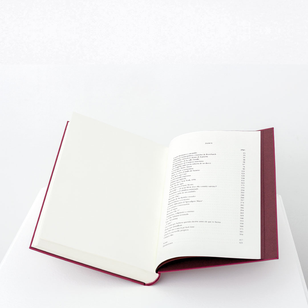 Livro Obstinadamente inclassificável, Fabio Kacero é um artista do estranhamento, que habita as margens dos cânones e das disciplinas características da comunidade artística de Buenos Aires. Suas obras apresentam um senso de humor peculiar e uma forte emoção estética. Com seu trabalho, entre outras missões, conseguiu construir uma ponte prolífica e experimental com a qual transita entre as artes plásticas e a literatura (Kacero também é poeta e contador de histórias). Pertencente a esta série, Índice é uma obra inserida entre a clarividência sorridente e instantânea de uma ocorrência e a produção metódica que exige o cumprimento de um slogan conceitual. Índice é um livro inteiramente composto de índices; isto é, uma lista de uma série de listas (um índice de índices?), que nos questiona por sua beleza poética – aquela que produz a ordem sistemática de um texto inexistente.
