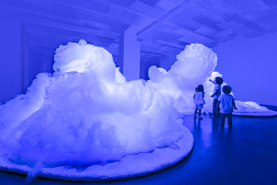ESPUMA | Kohei Nawa De setembro a novembro de 2017 Kohei Nawa (1975) é um dos principais nomes da nova geração de artistas multidisciplinares do Japão. Ele utiliza tecnologia e uma diversidade de materiais para expandir as possibilidades da escultura. Espuma foi instalada num ambiente azul, com iluminação programada para revelar sua constante transformação. Nessa mutação, uma espécie de montanha de espuma, ou nuvens, se modificava a cada segundo, como um elemento orgânico em que cada célula está condicionada ao seu ciclo de nascimento e destruição, lembrando a trajetória da própria vida. Nawa tem atuação além da arte, alcançando a arquitetura e a moda. Formado pela Universidade de Artes da cidade de Kyoto e pelo Royal College of Art de Londres, conta com trabalhos na coleção permanente do Metropolitan Museum of Art de Nova York. O artista veio ao Brasil para o evento de abertura. A exposição Espuma teve curadoria de Marcello Dantas.