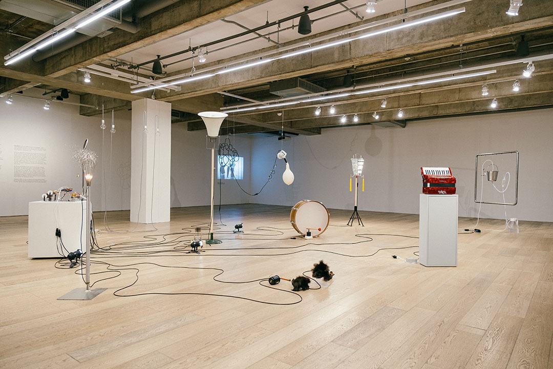 Parade – um pingo pingando, uma conta, um conto, de Yuko Mohri De agosto a novembro de 2021 Transitoriedade e impermanência, conceitos muito presentes na cultura nipônica, norteiam as criações da artista visual Yuko Mohri, conhecida por suas instalações ao mesmo tempo delicadas e potentes. Na exposição Parade – um pingo pingando, uma conta, um conto a artista levou à Japan House São Paulo uma releitura de seu próprio trabalho, numa composição de esculturas cinéticas e sonoras. O título remete à famosa canção de Tom Jobim, indicando uma versão “tropicalizada” do trabalho da premiada artista japonesa, que causa curiosidade e maravilhamento. A instalação funcionava a partir de uma máquina que lê os desenhos de uma toalha de mesa estampada – as imagens são traduzidas em correntes elétricas, provocando reações inesperadas nos objetos, que parecem tomar vidar própria. Outra parte da obra foi inspirada nos vazamentos de água no metrô de Tóquio, em 2009, ocasião em que foram usados diversos recipientes, como garrafas, baldes e tubos, para conter o fluxo. A exposição, com curadoria de Natasha Barzaghi Geenen, integrou a rede de colaborações da 34ª Bienal de São Paulo. A parceria entre as duas instituições representou um reconhecimento à relevância do trabalho desenvolvido pela JHSP na difusão da cultura e da arte nipônica no Brasil.