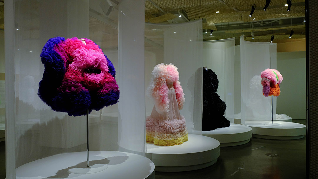O fabuloso universo de Tomo Koizumi De outubro de 2020 a janeiro de 2021 O jovem designer japonês Tomo Koizumi, nascido em 1988, vem conquistando respeito e admiração no mundo fashion com suas criações lúdicas, vibrantes e impactantes. Ele ganhou os holofotes da mídia especializada e das redes sociais através do reconhecimento por parte de celebridades e figuras importantes do universo da moda, como a jornalista Katie Grand, a cantora Lady Gaga e o estilista Marc Jacobs, que abriu espaço na sua loja para que Koizumi realizasse um desfile icônico na Semana de Moda de Nova Iorque de 2019. A Japan House São Paulo trouxe 13 vestidos do artista para a exposição O fabuloso universo de Tomo Koizumi, sendo três deles criados especialmente para a mostra. Cores alegres e volumes extravagantes são a marca do designer – para a confecção de cada peça, foram utilizados de 50 a 100 metros de organza japonesa. A exposição, com curadoria de Natasha Barzaghi Geenen, incluiu ainda o vídeo do desfile em Nova Iorque e um painel de referências inspirado na estética das redes sociais.