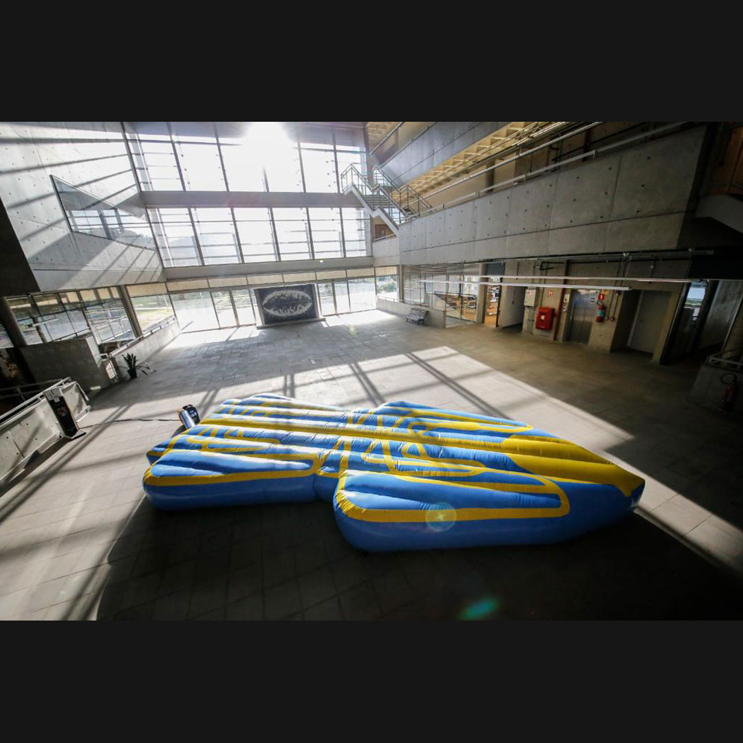 Gu da Cei é artista brasiliense e desenvolve seu trabalho artístico no âmbito da intervenção urbana, instalação, poesia, performance e vídeo, além de buscar compreender as possibilidades dialógicas entre processos históricos e contemporâneos da fotografia, bem como seus espaços de exibição e circulação. Discute vigilância, imagem, direito à cidade e transporte coletivo. Na obra Pula-pula o corpo que Gu reivindica é o das periferias, o corpo racializado. O artista tem realizado diversos projetos ligados ao trânsito dos corpos periféricos nos transportes públicos da Ceilândia, divisão administrativa do Distrito Federal. Sua produção oscila na dialética entre o corpo suburbano e seu deslocar-se por entre os territórios da urbe. A obra consiste em uma inusitada crítica às catracas verticais duplicadas em sua altura, fabricadas exclusivamente para serem instaladas em linhas de transporte público que fazem trajetos pelas periferias com o objetivo de impedir que usuários do transporte consigam pulá-las. A ironia contida na obra é reiteração ao direito constitucional de ir e vir, que apesar de restrito pelo modelo econômico vigente, encontra sua superação na subversão de barreiras simbólicas da opressão. Fotos: Karim Khan