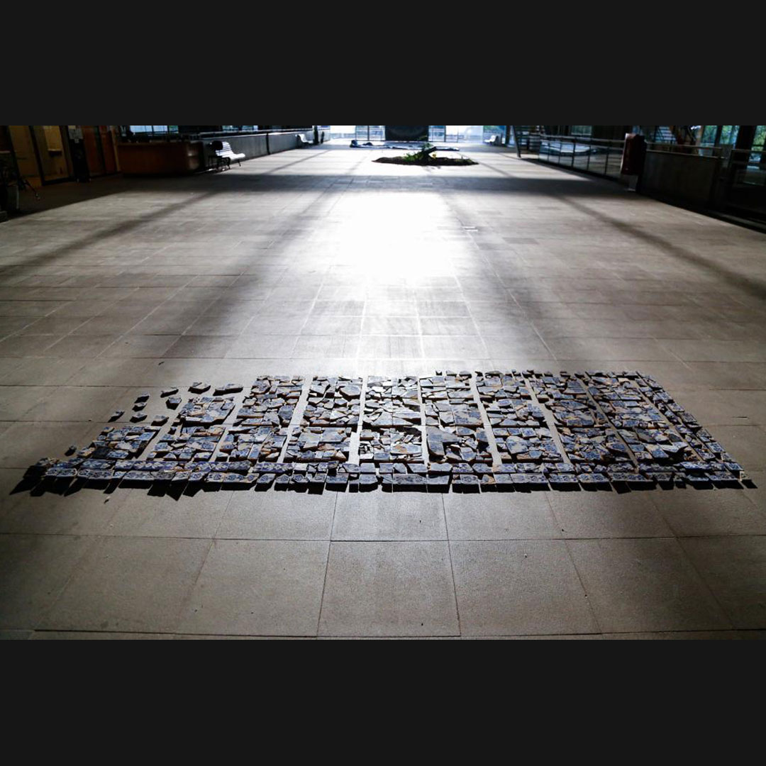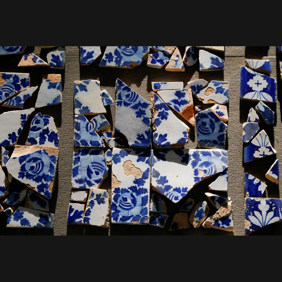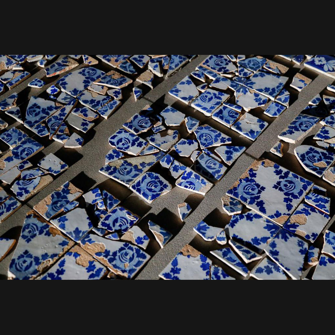 Sabyne Cavalcanti é uma artista que trabalha com escultura, performance e instalações. Em Ruínas da Prainha e Origens da Terra, a artista cearense Sabyne Cavalcanti traz questões conflituosas no tocante à preservação da memória de uma época e sociedade, através da arquitetura e de objetos do cotidiano que marcaram um período. Entretanto, a memória sacralizada e preservada em nosso país é também uma construção hegemônica de nação em detrimento de outras memórias invisibilizadas. Os azulejos que foram despejados no lixo, vindos de uma reforma na Igreja Nossa Senhora da Conceição da Prainha, localizada na cidade de Fortaleza, são originariamente de Portugal. Foram encontrados pela artista, que os recolheu ao perceber que os cacos fizeram parte de um adorno da antiga igreja – que mesmo tombada pelo IPHAN, havia sido destruída. A artista busca reavivar histórias, remontando ligações quebradas de vidas e memórias passadas. A referência de memória que a artista resgata é de origem portuguesa. A localidade onde a igreja foi construída possuía antes uma outra ocupação e outras tradições, a dos Potiguara. Entretanto, caminhando de uma extremidade a outra daquela região não será possível encontrar qualquer referência sobre os indígenas que ali habitavam. Por que os Potiguara, povos originários daquela região, não possuem monumentos ou qualquer construção que faça referência ao seu povo?