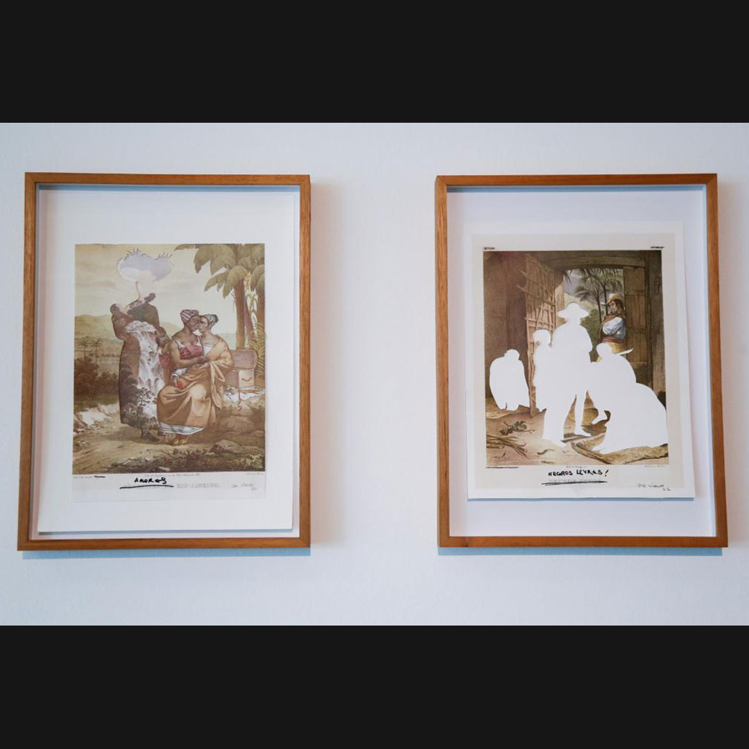Gê Viana é artista maranhense de Santa Luiza, reconhecida por suas colagens decoloniais em que transpõe imagens contemporâneas, inspiradas por acontecimentos cotidianos, em confronto com a cultura colonizadora hegemônica e seus sistemas de arte e comunicação. Gê traz para o IEB duas obras em que se posiciona criticamente em relação às imagens produzidas sob a égide dos assim chamados "artistas viajantes", ou seja, artistas estrangeiros que representaram as populações nativas brasileiras, desde o século XVI, de acordo com categorias pré-estabelecidas, carregadas de preconceitos. Mesmo as imagens etnográficas, tidas como “científicas” e, portanto, neutras, não são capazes de dissimular o preconceito, nem mesmo o interesse de sobreposição e dominação da cultura européia frente aos povos originários. Gê se utiliza de algumas dessas imagens, cujos originais estão guardados no acervo brasiliana do IEB, para discutir, na perspectiva do conceito de decolonialidade, não apenas o estatuto dessa iconografia feita sobre o Brasil (e os brasileiros), mas também sobre o papel da instituição que zela pela sua preservação, estudo e divulgação. Fotos: Karim Khan