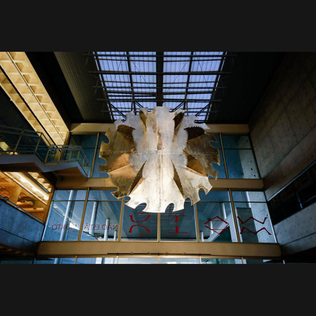 Lyz Parayzo é uma escultora brasileira que trabalha também com performance, joalheria e audiovisual. A escultura “Escudo Tubarão" que Lyz traz para o IEB, inédita, faz parte de um conjunto de trabalhos nos quais a artista reinterpreta a série Bichos, de Lygia Clark, para levantar questões sobre o corpo trans. Se por um lado os objetos de Lygia pedem o contato e a participação do público como forma de contrapor-se à racionalidade industrial da produção concretista da década de 1950, para Lyz, ao contrário, as esculturas não são dóceis e não devem ser tocadas; possuem ásperas arestas que dão ao corpo do objeto um aspecto de violência, como o fio de uma navalha ou as bordas de um de serrote. O aspecto agressivo (e defensivo) da obra alude à resistência, pois que, em uma sociedade machista e racista, simula arma de proteção contra as violências diárias sofridas pelos corpos trans. Fotos: Karim Khan