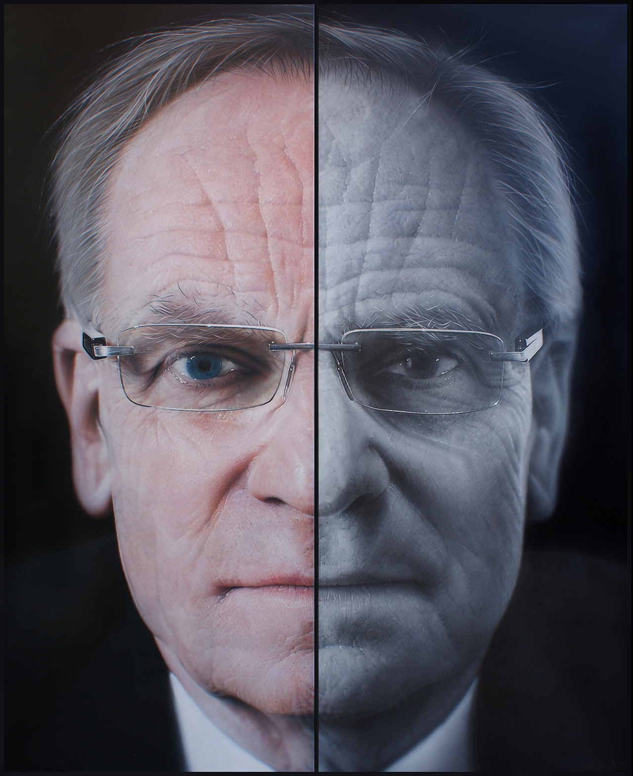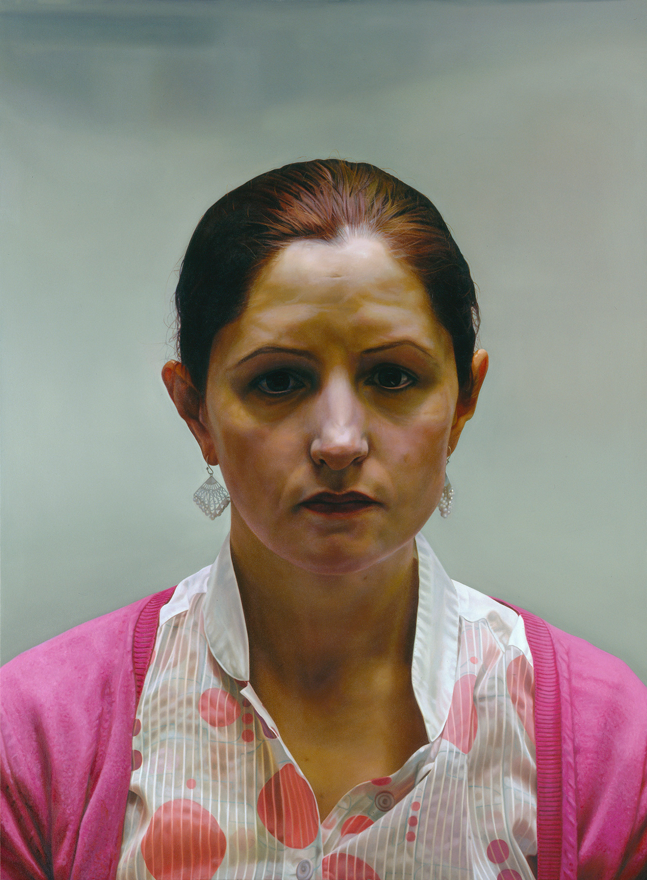 O retrato hiper-realista O gênero do retrato é muito difundido na obra fotorrealista e hiper-realista. Os artistas neste caso se baseiam na maior parte em modelos, os quais eles mesmos fotografam. As pessoas são extraídas do seu cotidiano e eternizadas em sua plena autenticidade do momento da captação da imagem, sem o uso de recursos adicionais para não alterar esta essência. Contudo a realidade não pode ser reconhecida somente de forma objetiva, mas deixar uma margem para a subjetividade. Pois a obra não há de ser uma imagem puramente espelhada, mas sim um espelho no qual o observador possa se reconhecer continuamente através da percepção e não somente da visão. O gênero do retrato não se atrela exclusivamente à representação do belo ou do imparcial. Os artistas contemporâneos são atentos a seu tempo e seu entorno. Ora o olhar aguçado do retratado é direcionado para o espectador em um convite para um diálogo direto, intenso e inesperado. Ou ainda nos apresenta a angústia e dor do protagonista da pintura, o qual em partes se mostra resignado e cabisbaixo. Para o artista, essas obras são o fator delimitador entre condições psiquícas, o imaginário e o real. Esta exposição também apresenta obras tridimensionais de escultores hiper-realistas de diversas gerações. Estes se dedicam à representação realista do ser humano, que é colocado lado a lado com o público, criando um diálogo desconfortável entre ser e aparentar, como é o caso da obra de John De Andrea. Ele foi um dos pioneiros da escultura hiper-realista ao criar figuras humanas extraídas de seu universo privado e desprovidas de pretensão ou ornamentos supérfluos.