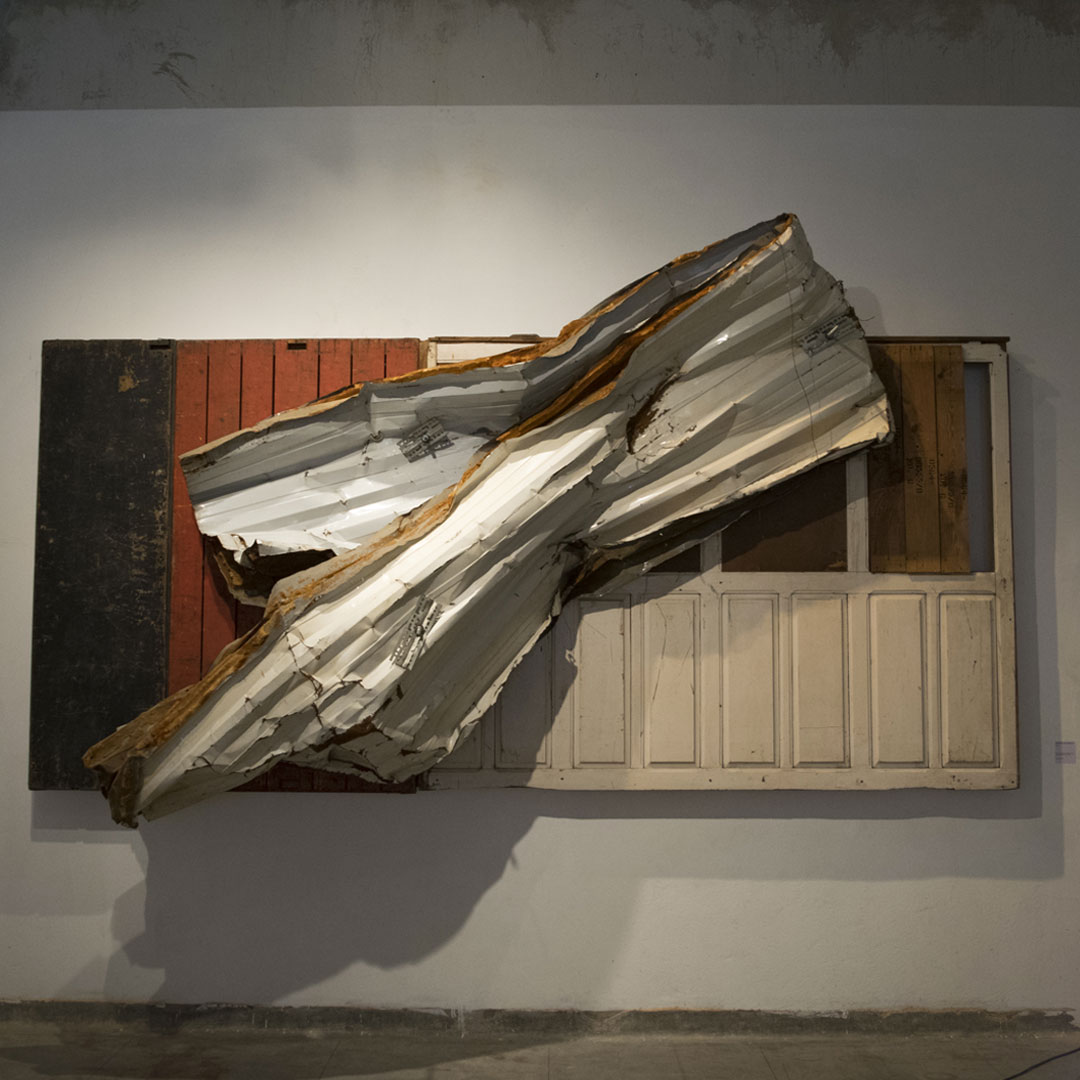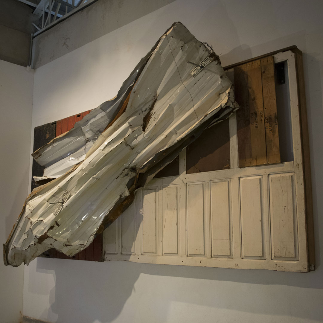 Marcos Amaro (1984) descontrói os objetos na forma e no significado para reinventá-los. Retira-os de seus contextos funcionais para reincorporá-los no mundo das linguagens simbólicas, no mundo poético das artes. Entretanto, os fragmentos incorporados e reordenados pelo artista, trazem consigo registros de seus significados anteriores, como, por exemplo, um pedaço de tecido, ou uma camisa, nos remetem aos personagens ocultos que as utilizou. Ou ainda, um pedaço de porta que nos sugere o passar do tempo (energias armazenadas) e vivências acumuladas. São, portanto, sinais de vida que ainda palpitam nos objetos descartados. O artista, ao incorporá-los, afere a eles um novo pulsar de vida e de renovada força poética. Fabio Magalhães